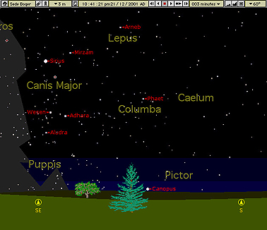 Figure 10: A simulation of Canopus rising at Sede Boqer at an azimuth of 158°.