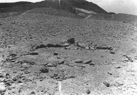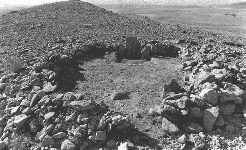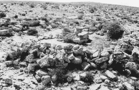 To the west of the village on the top of the hill, overlooking the valley and the houses of the village, was the threshing floor, and to the south of it a small open mosque with a rectangular mihrab made of 3 blocks of stones [bottom figure]. The mosque was built to a height of probably two layers of stones, no more than 0.5 m., and was almost square, about 3 x 3 m. and could contain no more than 8-10 men at a time.[11]