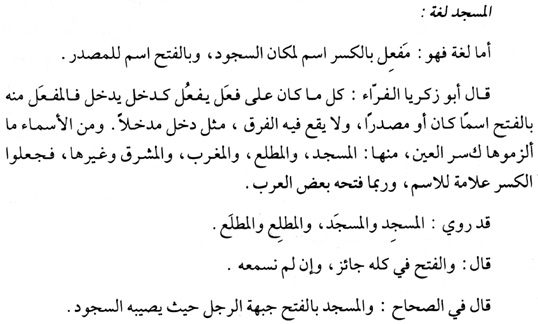 Now that the linguistic issues are clarified, let us now turn to the legal issues (i.e., Islamic Law) concerning the word masjid. Al-Zarkashi says: