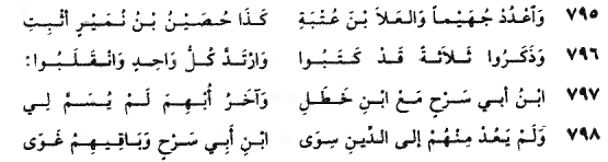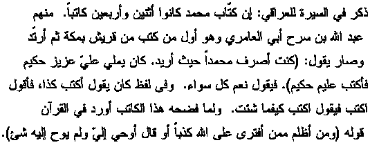 The above argument is presented by the critic as a "quotation from as-Sîrah by al-'Iraqî". First of all, there are many people by the name of al-'Iraqî but the author does not say which al-cIraqî is mentioned here. Fortunately, God guided us to the source of this claim: Alfiyyat us-Sîrat in-Nabawiyyah by al-Hâfidh al-cIraqî. In fact, al-Hâfidh al-cIraqî has wrote the Sîrah in a piece of poetry of 1000 verse called Alfiyyat us-Sîrat in-Nabawiyyah. Here is the relevant quotation:[8]