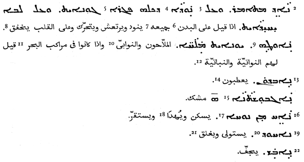 [96] R. J. H. Gottheil (ed.), Bar ‘Alī (Īshō‘) The Syriac-Arabic Glosses, op. cit., p. 9; Hassan Bar Bahlul (Ed. R. Duval), Lexicon Syriacum auctore Hassano bar Bahlule: voces Syriacas Græcasque cum glossis Syriacis et Arabicis complectens, Volume 1, p. 11.