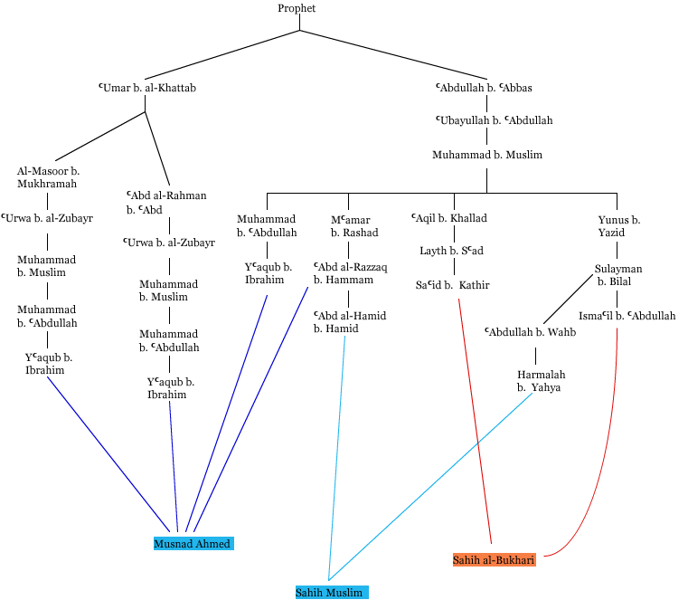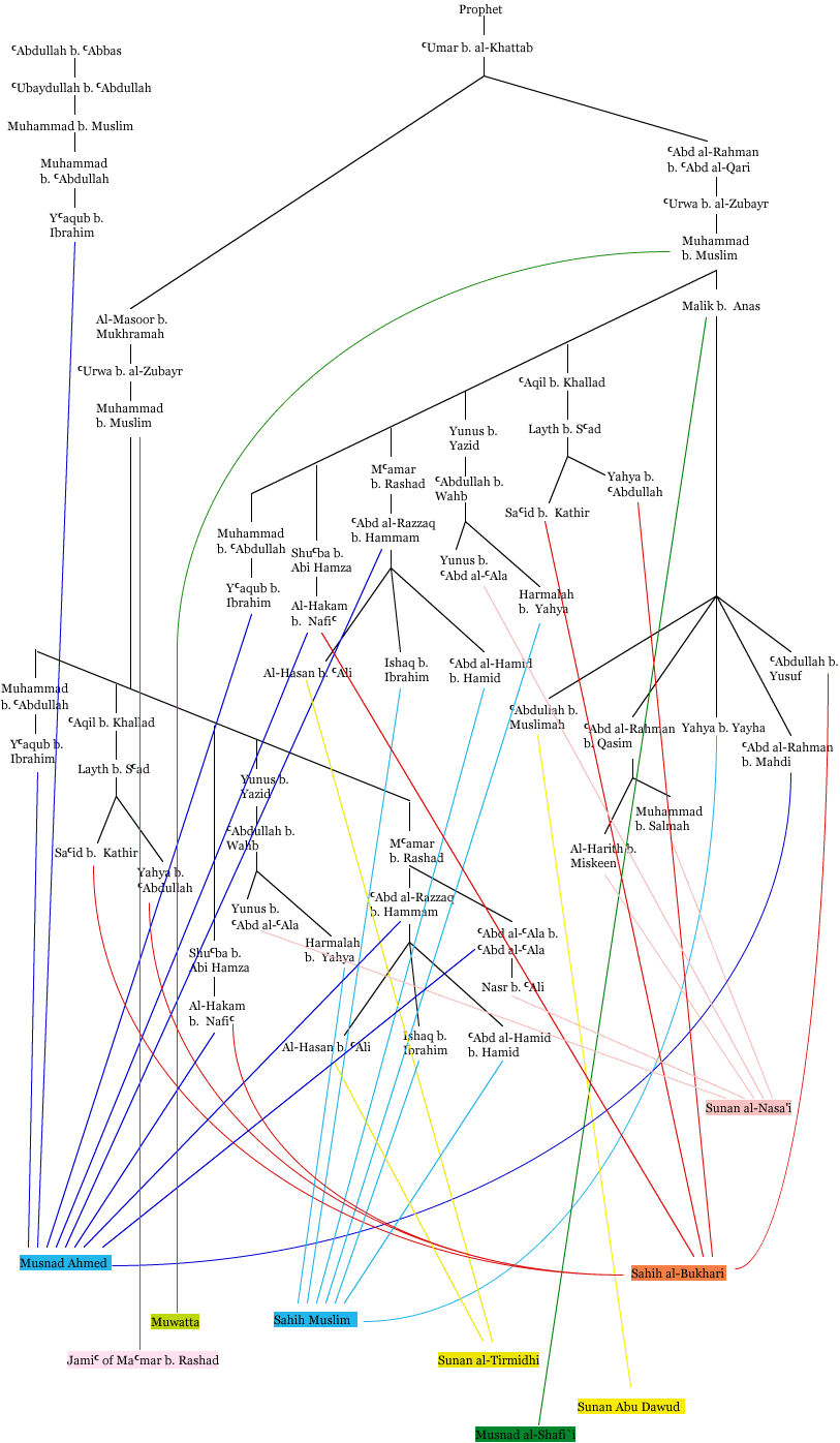 [45] The isnad bundles were drawn using Hadith Sharif software by al-Sakhr.